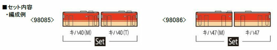 キハ40形2000番代 キハ47形0 1000番代は主に西日本地域向けの暖地対応車で、客窓は2段上昇式のユニット窓を装備していますキハ47形0番代はトイレ付で屋根上に水タンクが装備され、キハ47形1000番代はトイレが無く屋根上がスッキリした姿が特徴です姫新線で活躍していた車輌は上部がオレンジ色で下部がクリーム色のツートンカラーが特徴でした●動力付き ●ハイグレード(HG)仕様 ●エンジンが換装され、側面のルーバーが撤去された姿を再現 ●床下に装備されたAU34クーラーを新規製作 ●前面窓ガラスはデフロスタ付の姿を再現 ●タイフォンは「シャッター形 スリット形」各大小の4種類からの選択式 ●交換用前面表示パーツ付属 ●交換用前面表示パーツは姫新線のほか、加古川線の表示も収録 ●車番は選択式で転写シート付属 ●ヘッド テールライト、前面表示部は常点灯基板装備、ON?OFFスイッチ付 ●ヘッド テールライト、前面表示部は白色LEDによる点灯 ●フライホイール付動力、新集電システム、黒色車輪採用 ●メーカー:TOMIX(トミックス) ●商品番号:98085 ●スケール:Nゲージ