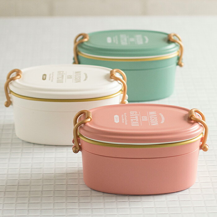 マカロンカラーにゴールドラインが可愛い、ガーリースタイルのランチボックスです。