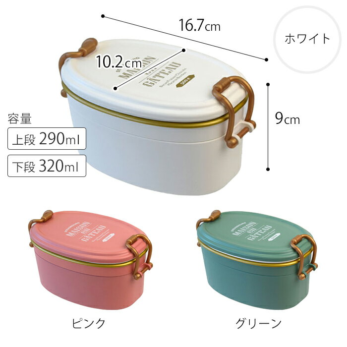 コンパクトながら、上段290ml、下段320mlのたっぷり容量なので、育ちざかりお子様の弁当箱として、高校生・社会人の女性にも、幅広く使える容量です。